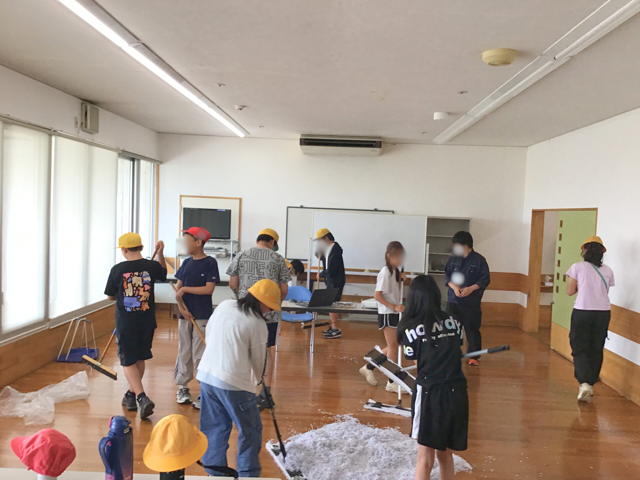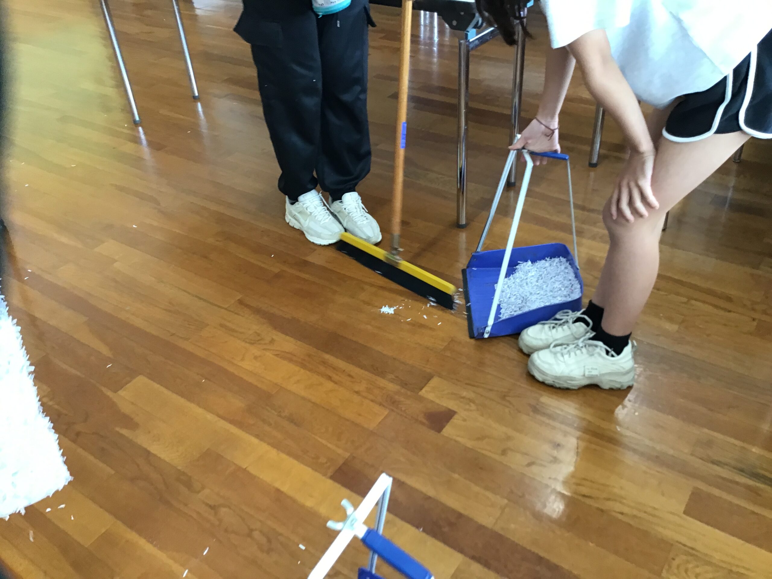 ほうきとダストモップを持って、全て1か所に集めます!!!