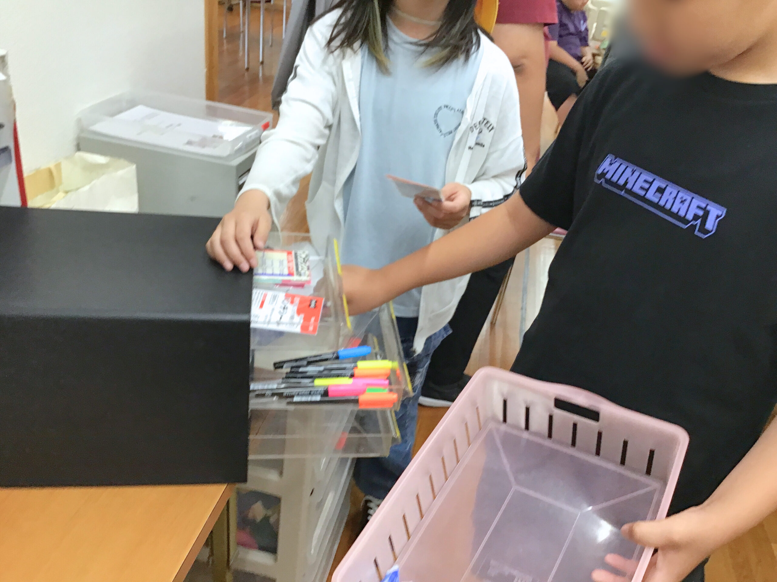 では、実際に輪ゴムを箱に詰めます!