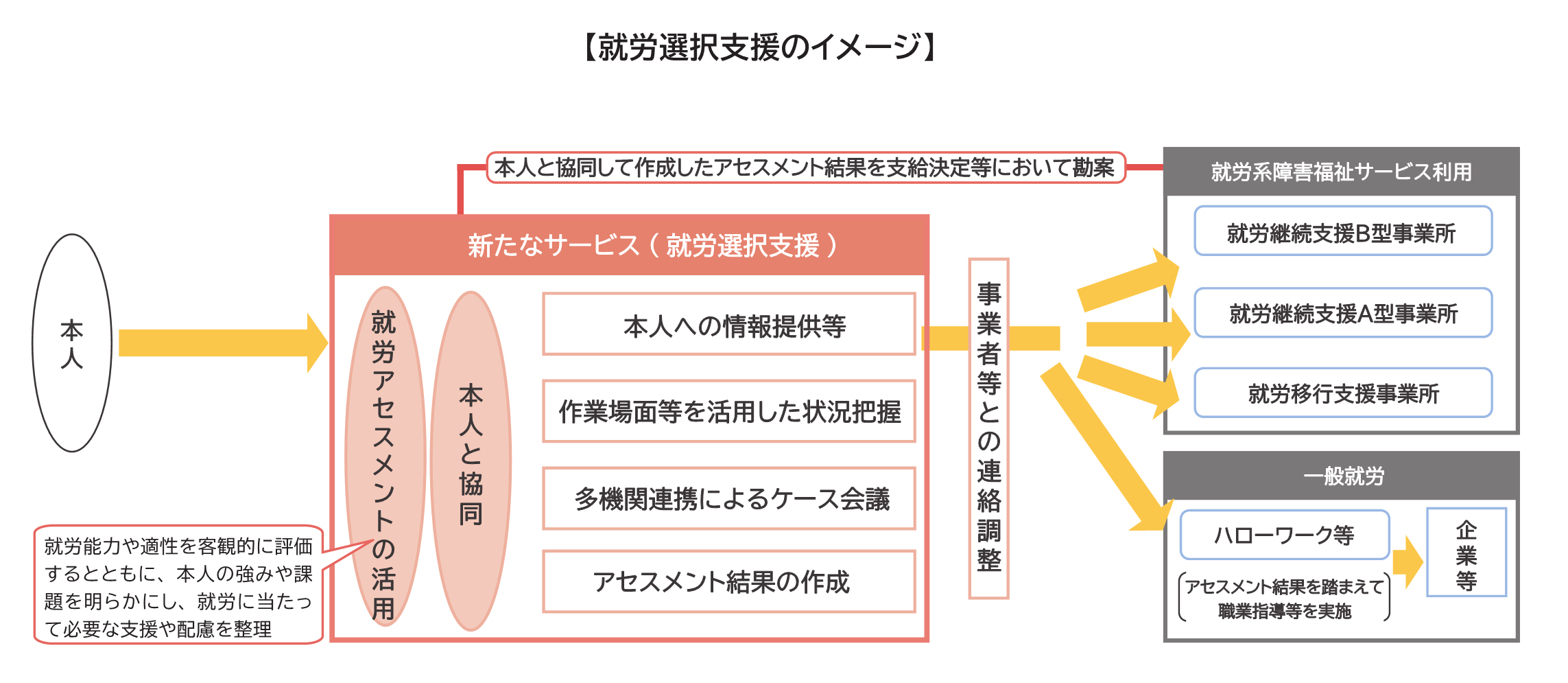 就労選択支援は、障害のある方が自分らしい働き方を見つけるための新しい制度です。