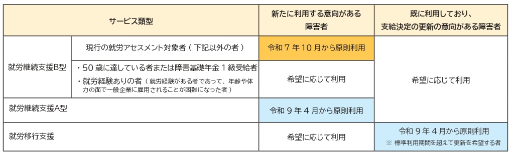 新たに就労継続支援A型の利用を希望する方や、就労移行支援を標準期間(2年)を超えて利用したい方も、原則として利用が必要になります。
