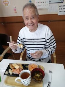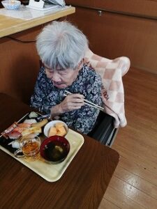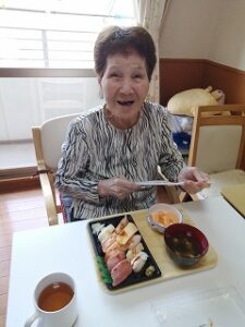 普段はデザートの果物から食べられる方が多いのですが、今日は皆さまが大好きなお寿司!