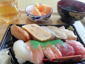 お寿司にお吸い物と、デザートの『赤肉』メロンまで!