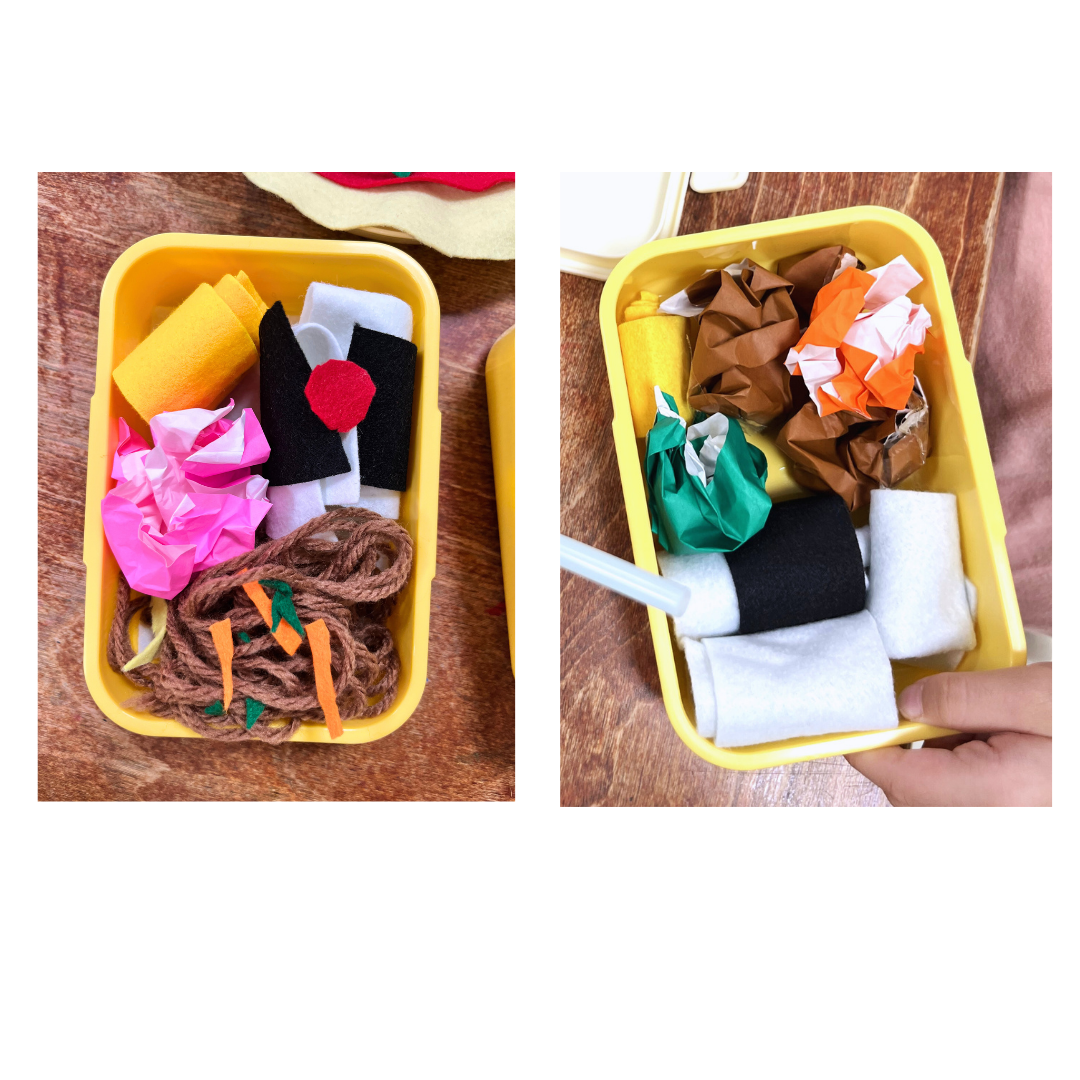 フェルトを重ね合わせたり、丸めて立体感を出すことによって手指の感覚遊びとしても効果的です!