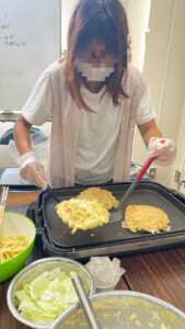 さて今回の調理レクでは、お好み焼き、明石焼き、酢の物を作りました!