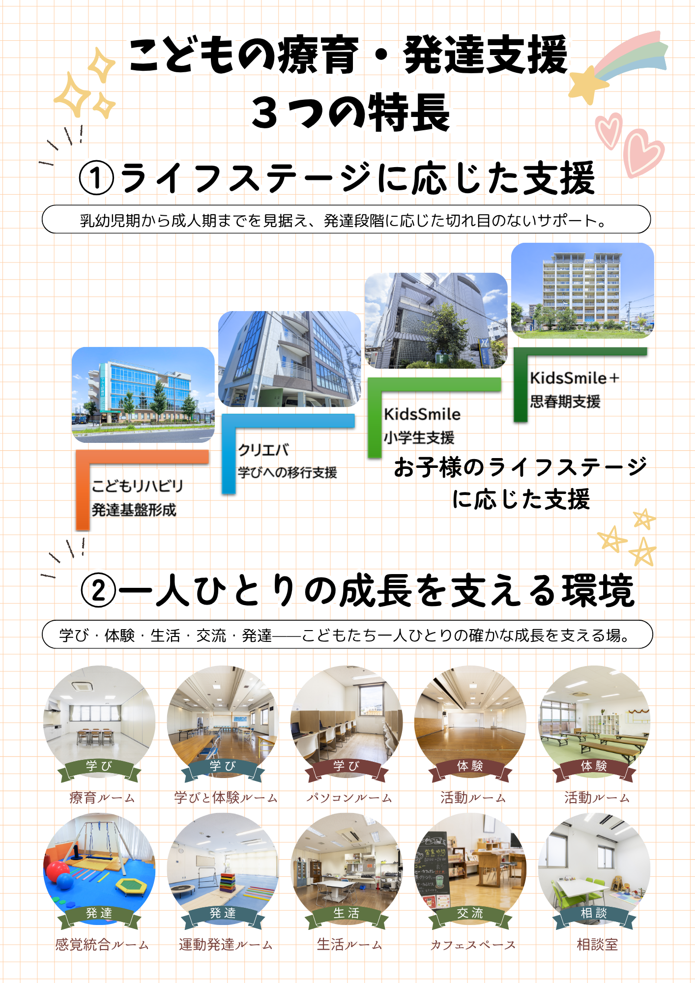 特長1|成長をつなげる「ライフステージに応じた支援」