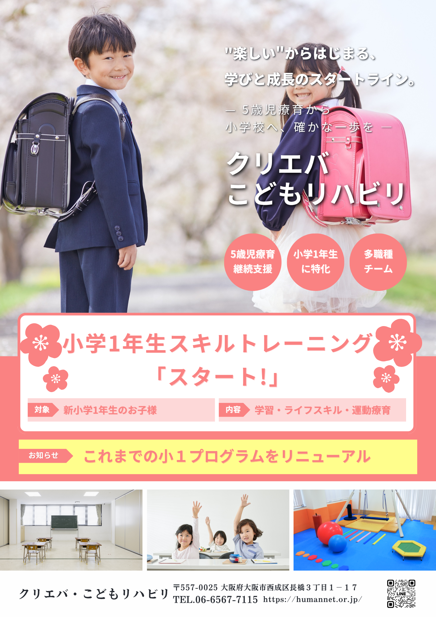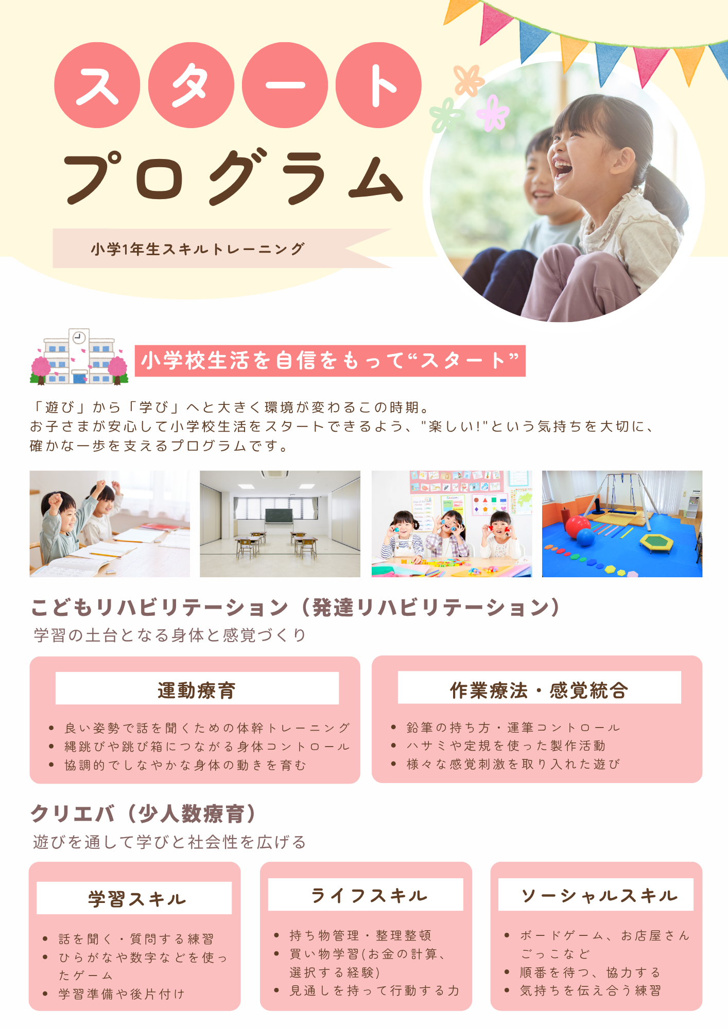 「学校での生活、大丈夫かな」「勉強についていけるかな」「お友だちと仲良くできるかな」――そんな想いに寄り添いながら、クリエバ・こどもリハビリテーションセンターは、新しいプログラム「スタート!」を開始します。