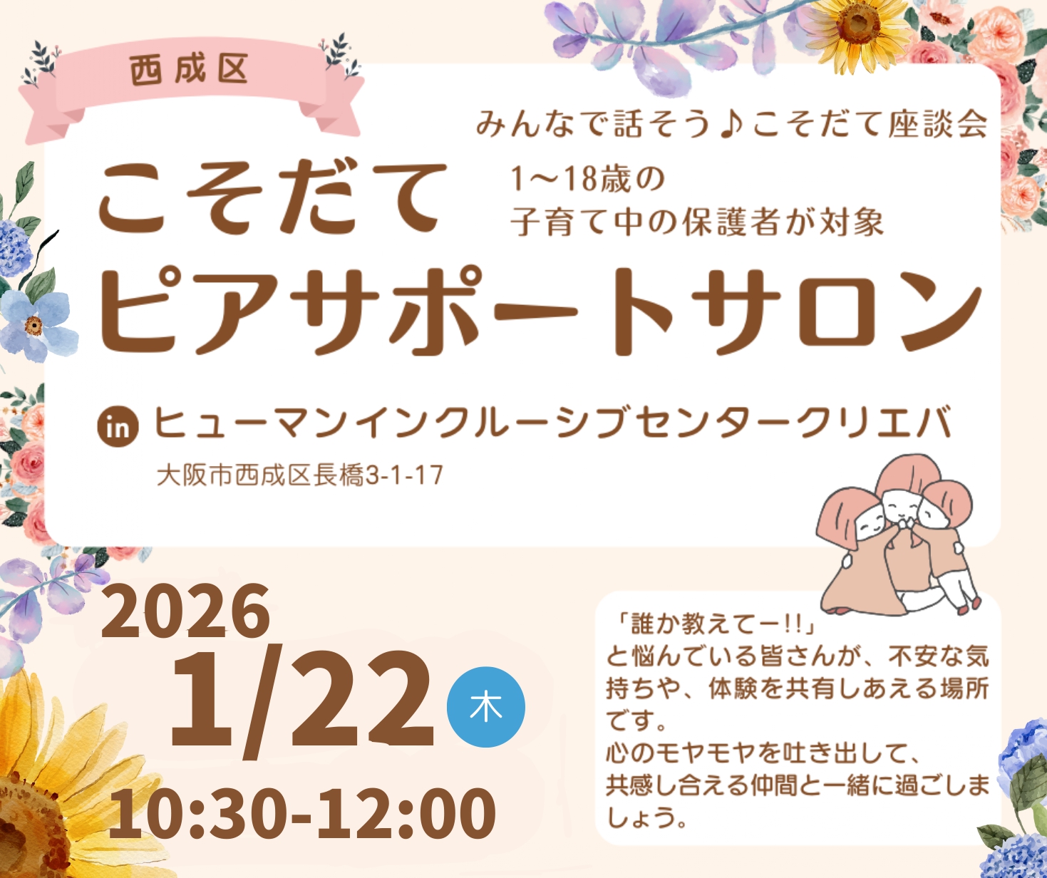 先日ご案内しておりました次回の「こそだてピアサポートサロン」につきまして、