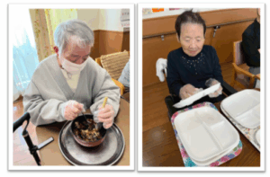 お料理が好きな利用者様には、スタッフと一緒に具材分けをお願いしました。