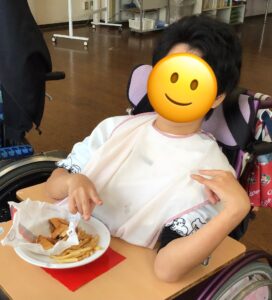 2種類のメニューから選んでいただきました。何日も前から楽しみにしてくれており、当日は満面の笑みで食べておられました。ハンバーガーっておいしいですよね⁉ポテトを山盛り食べている方もおられ、とても満足していただきました。