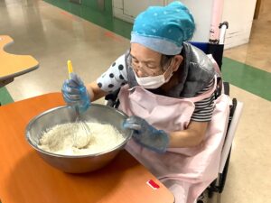 の二つ返事で引き受けてくださった居住者様と一緒に調理をしました。