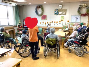 ある日の昼下がり、体操をする居住者様とスタッフの姿が…