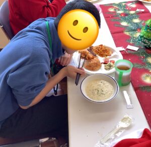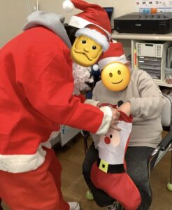こちらも皆さん楽しみにされていたようで、「忘年会するの?」とたくさんの方から質問がありました。当日みなさんに笑顔でお菓子を食べていただきました。