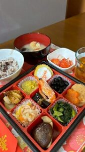 1日のお昼は注文していたおせちを召し上がっていただきました。