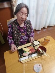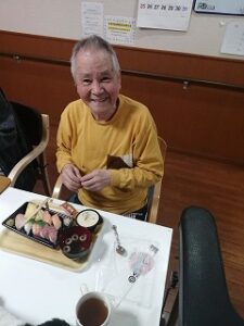 夕食にはお寿司をお出しさせていただきました。