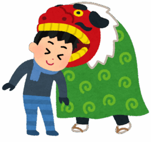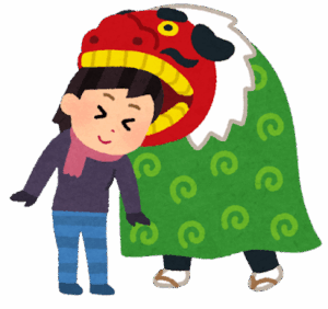 最後に獅子舞とパシャリ!みなさん獅子舞に食べられていました。