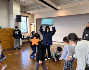 チームに分かれて玉入れ、玉転がし、大繩、お玉リレー、転がしドッジをしました(^^)/
