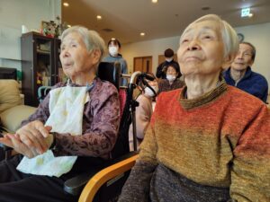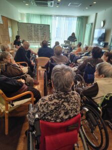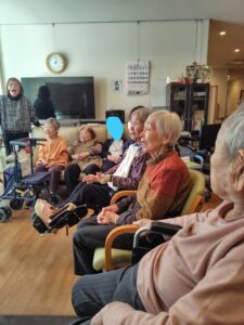萩ユニットのリビングに、総勢16名のご利用者さまが集まり、