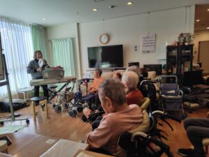 歌だけではなく、手指の体操や頭の運動をとりまぜ