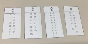 本日は職員の自作おみくじを引いて今年の運勢を占って