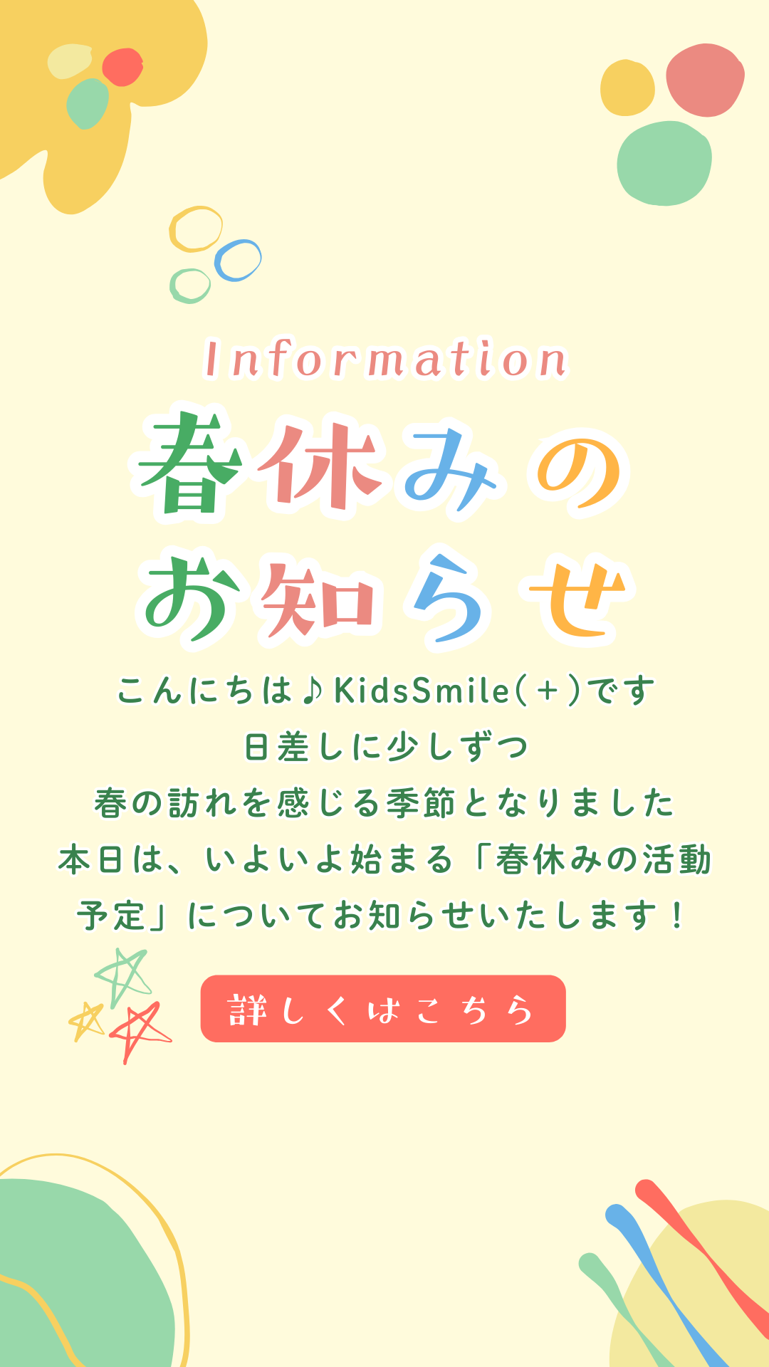 本日は、いよいよ始まる「春休みの活動予定」についてお知らせいたします!